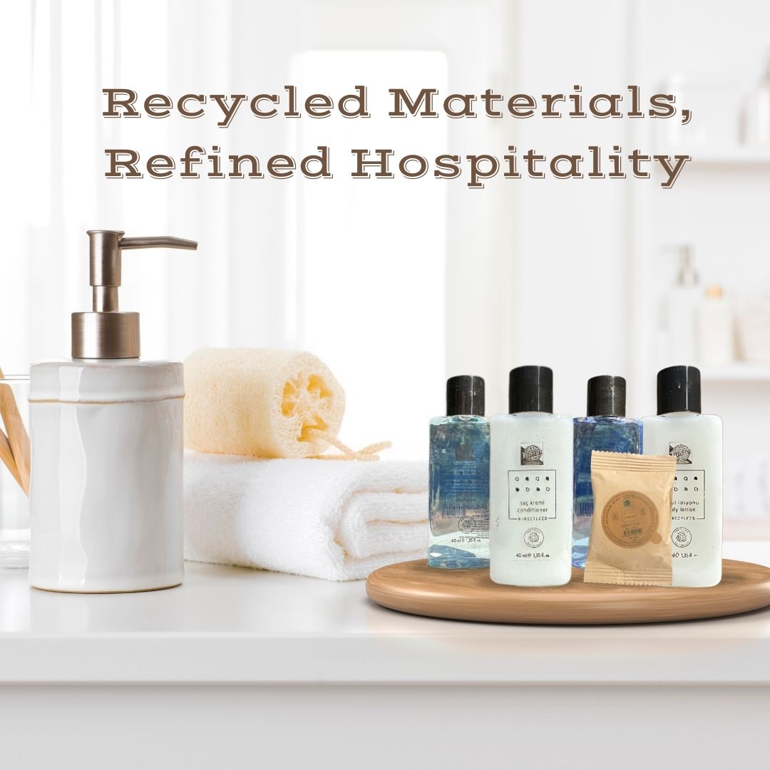 - N-Recycled Collection (60 Pieces) – 48 bottles (1.35 fl oz each) of shampoo, conditioner, shower gel, and body lotion + 12 bar soaps (0.7 oz each).