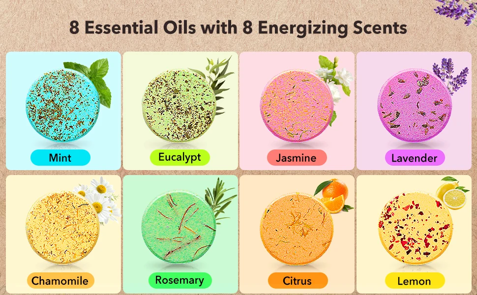 Upgrade everyday showers with this aromatherapy shower steamers 8-pack, designed to release pleasant fragrance when activated by water and steam. Each tablet transforms your shower into a refreshing, spa-inspired experience.