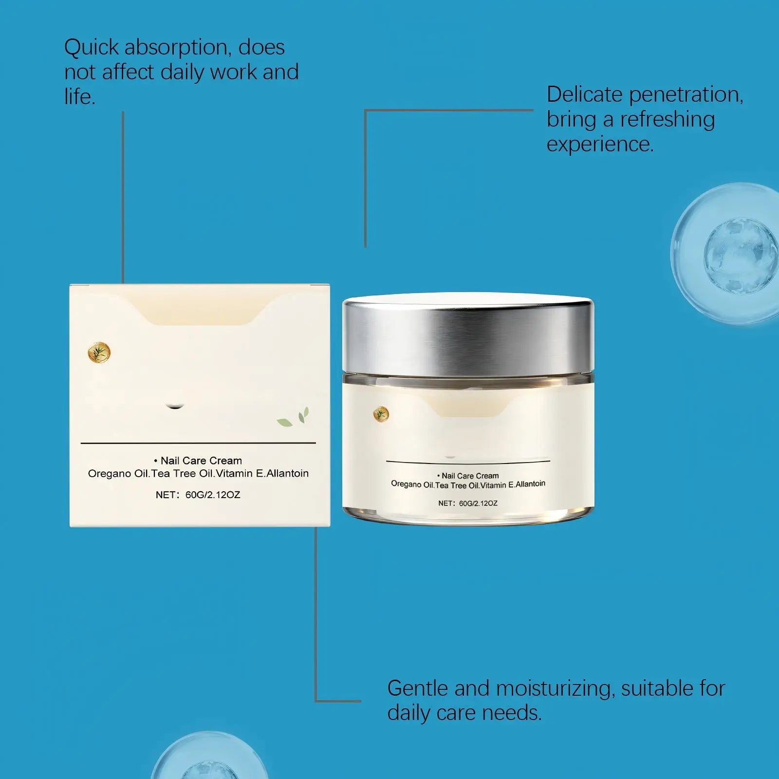 Its lightweight cream texture absorbs quickly without leaving greasy residue, making it suitable for everyday nail and cuticle care. Regular use helps support nail hydration, improve nail appearance, and maintain a clean nail environment.