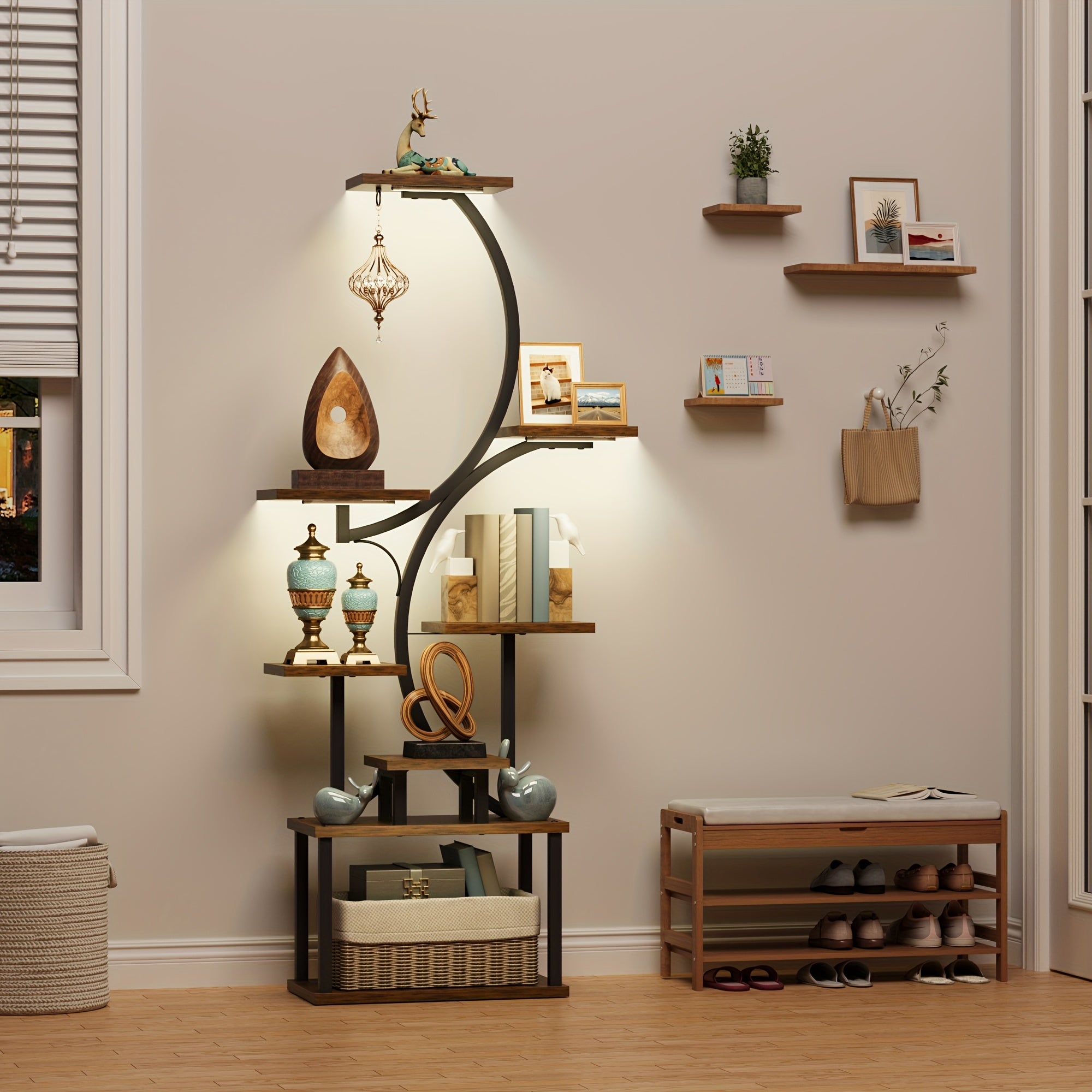 Illuminate your space with this 8-tier metal and wood bookshelf — a blend of industrial charm and practical design. Perfect for books, crafts, photo frames, and decorative items, this freestanding shelving unit features built-in lighting to create a warm, inviting glow in any room. Whether beside the staircase or under the window, it turns every corner into an elegant display.