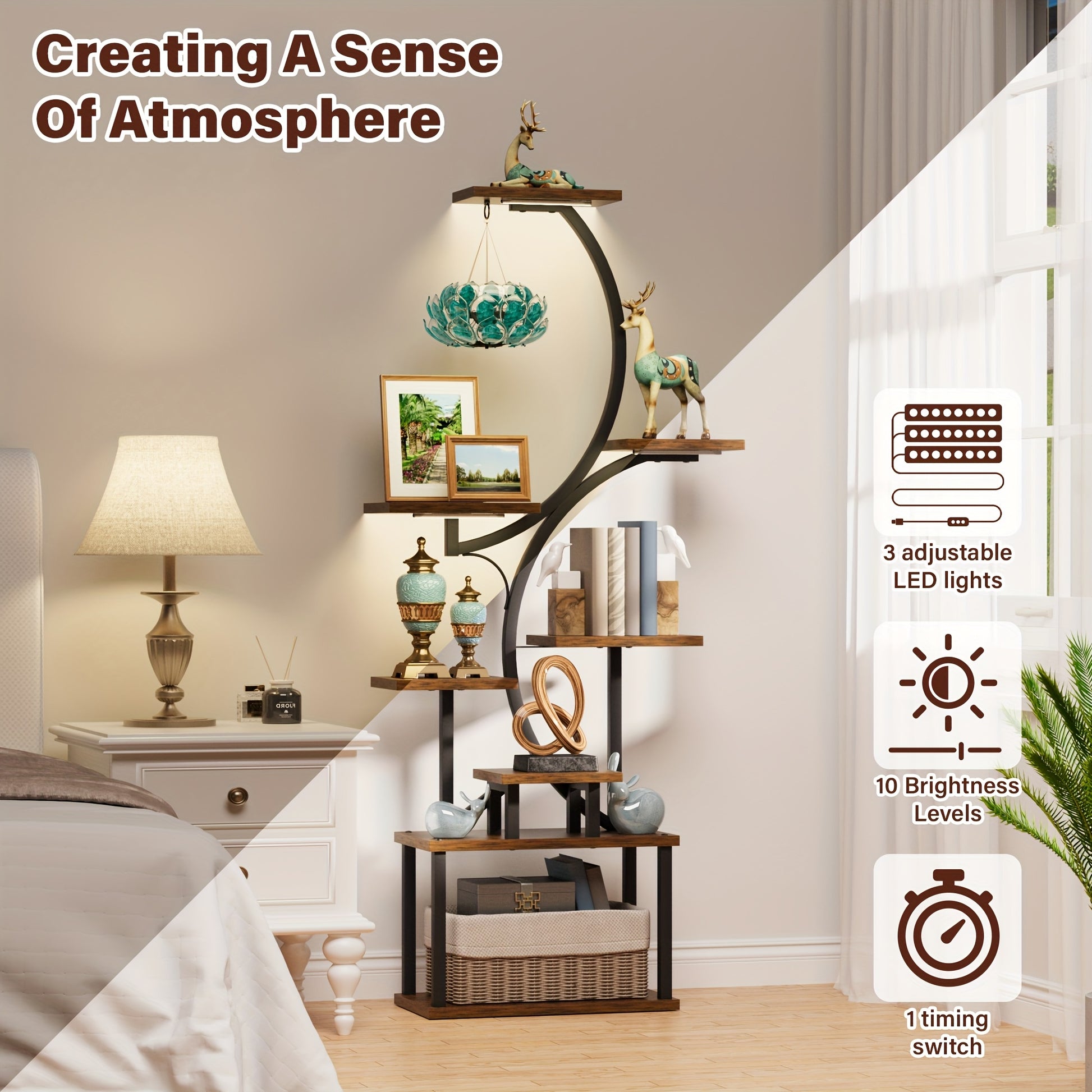 This 8-tier bookshelf enhances both the aesthetics and functionality of your home. The warm light brings life to your décor, while its strong structure offers practical organization for your favorite books and accessories.