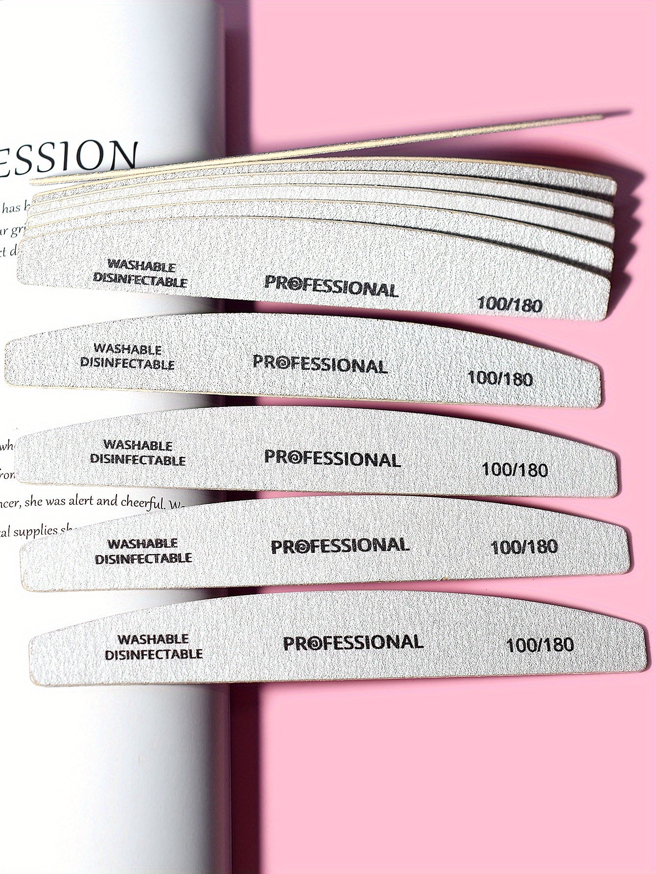 This 10-piece nail file buffer set is designed for shaping and smoothing nails during home or salon manicures. The half-moon shape allows controlled filing along the nail edge and surface.