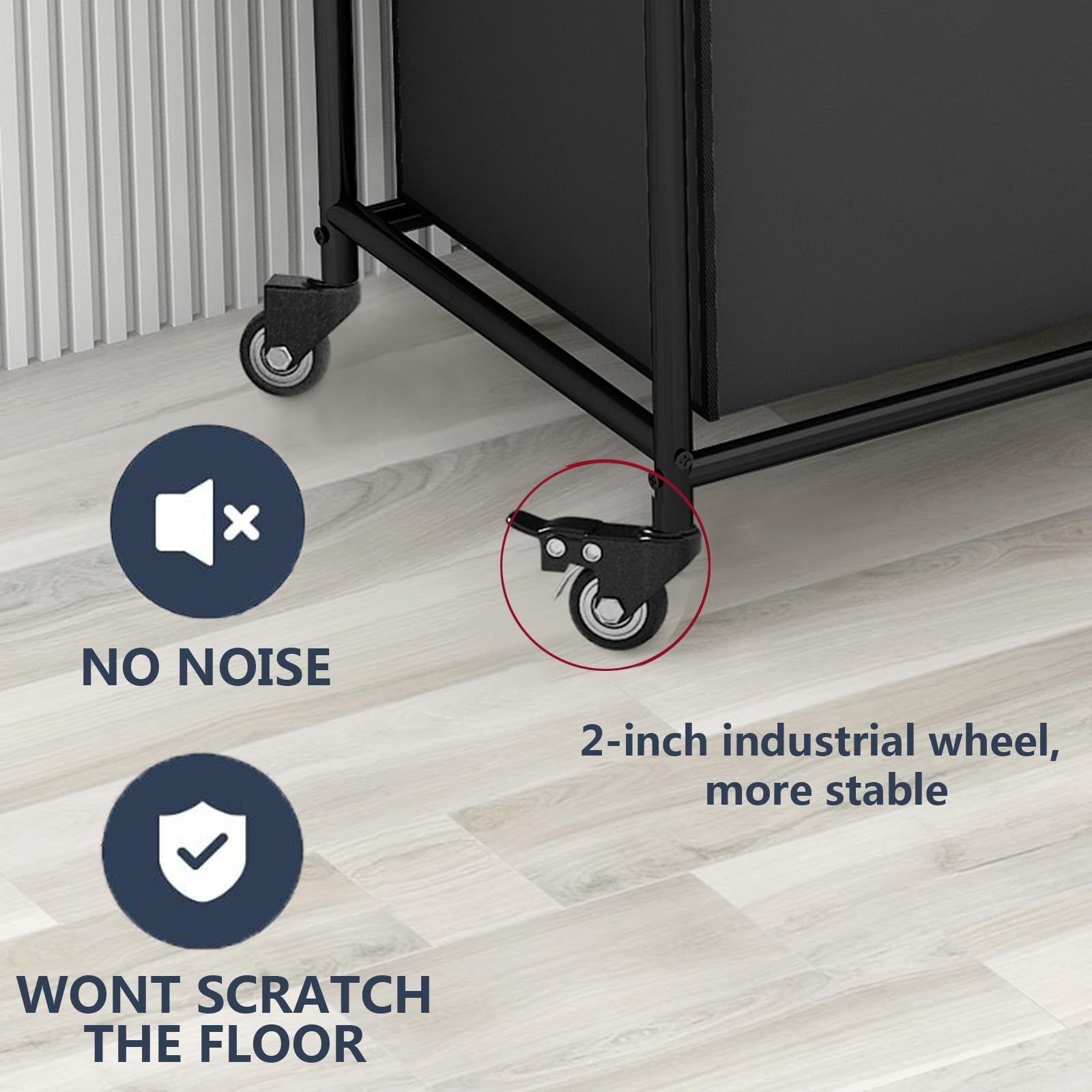Removable Bags & Lockable Wheels for Efficient Laundry Organization