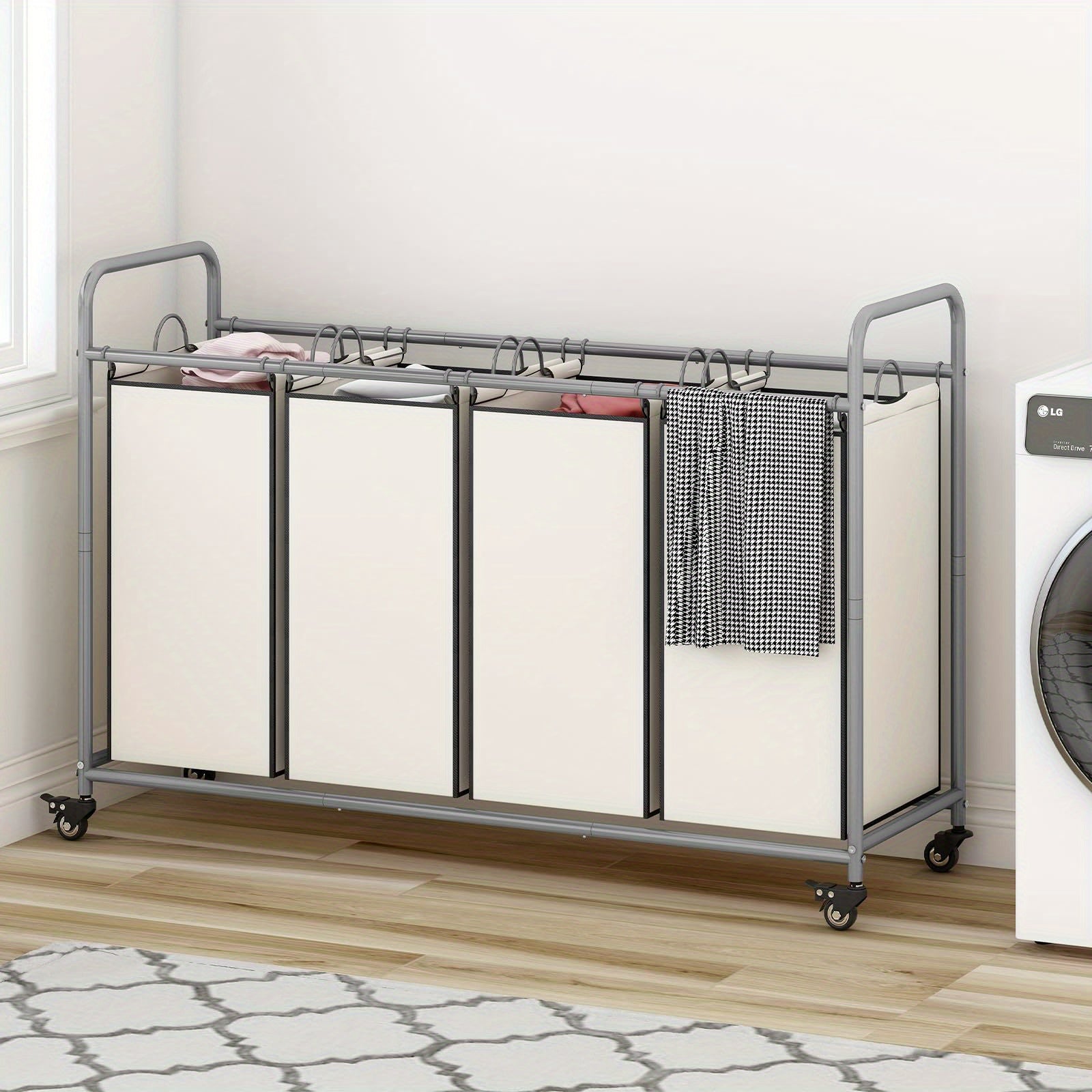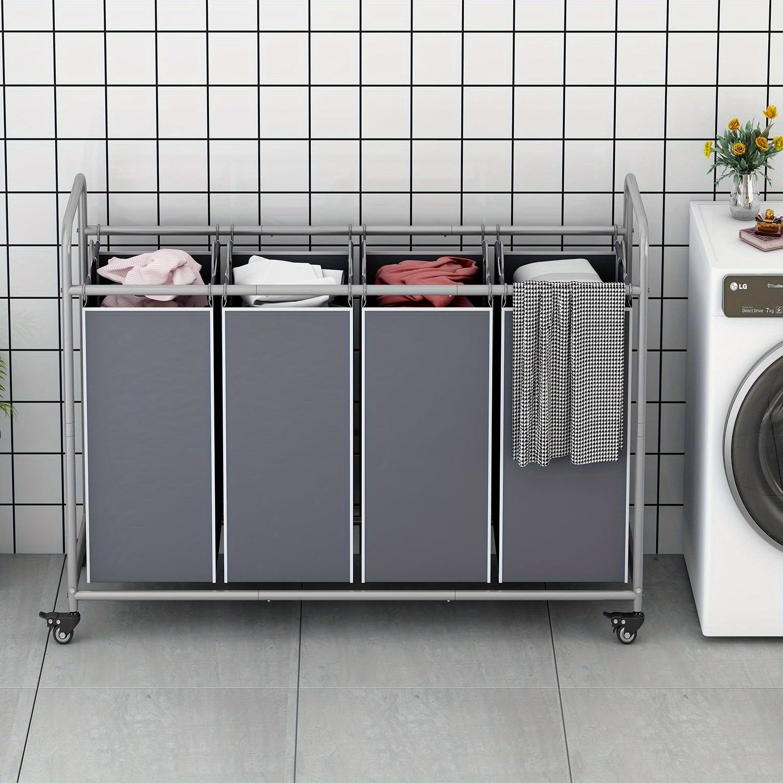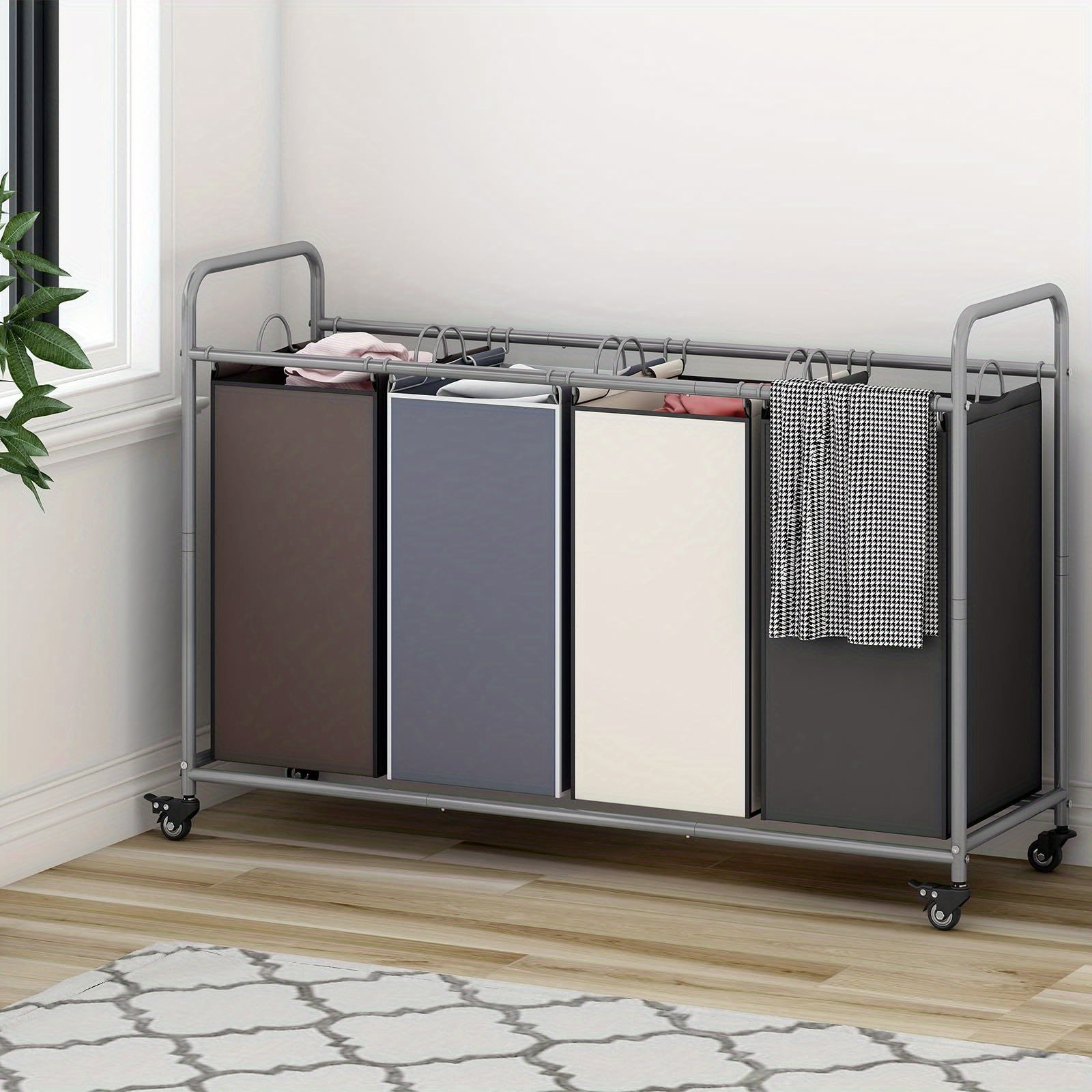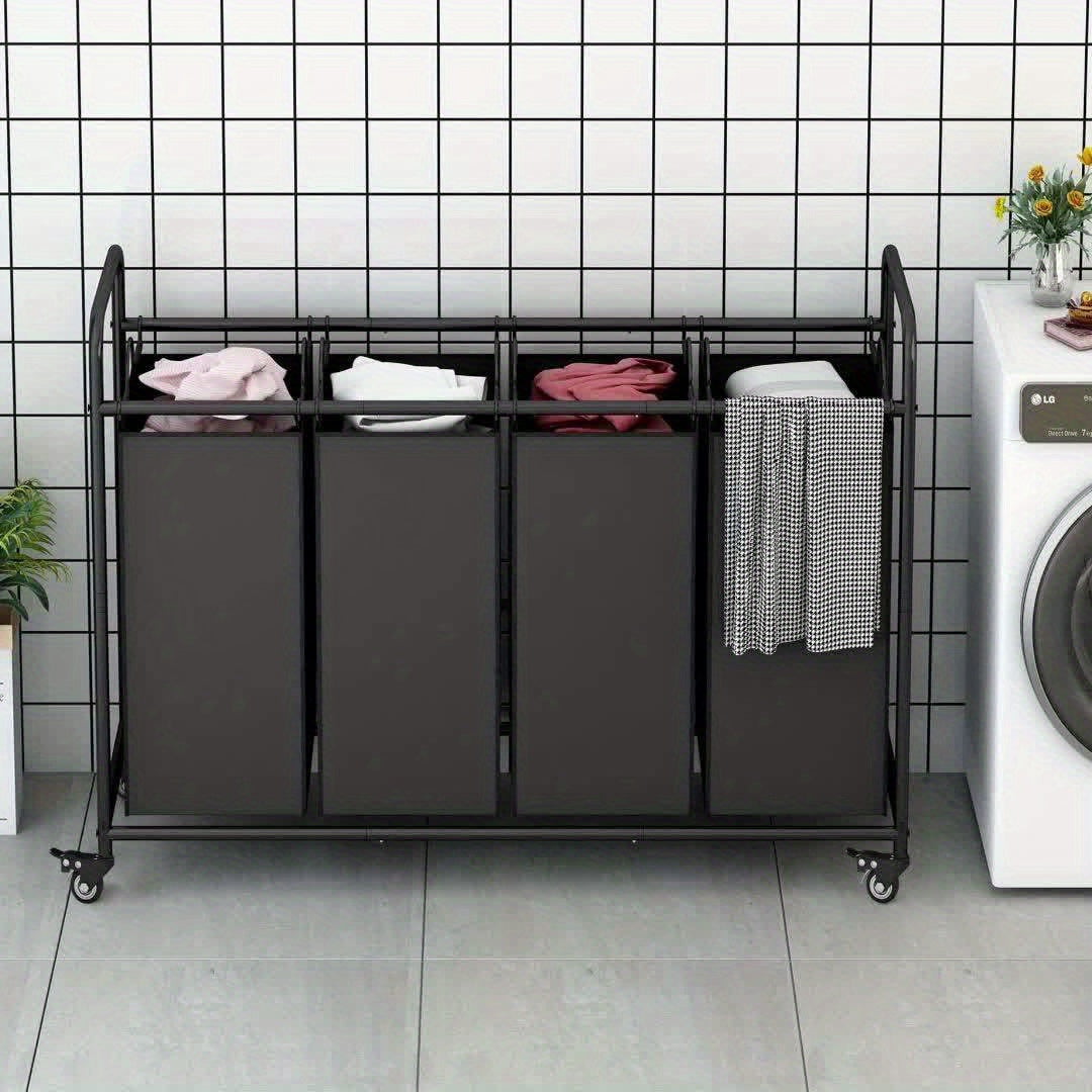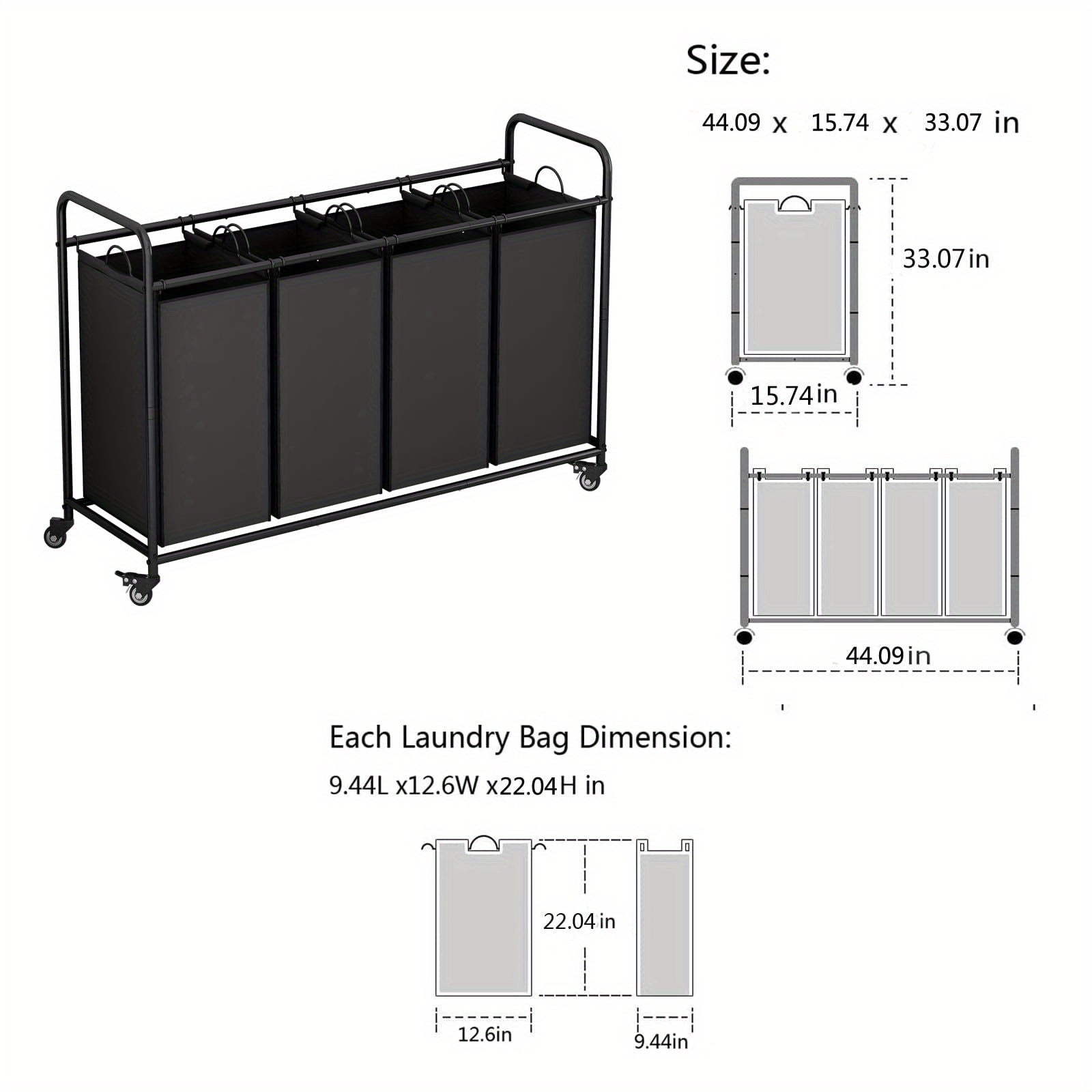 Streamline your laundry routine with this 4-bag sorter laundry hamper cart, thoughtfully designed for convenience, durability, and mobility. Built with a sturdy metal frame and smooth-rolling, lockable wheels, it lets you easily sort and transport laundry between rooms. Each removable bag is lightweight and easy to lift, making laundry day cleaner and more efficient.