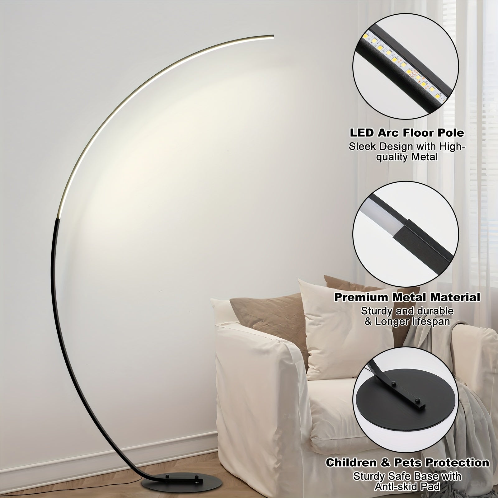Bring modern comfort and ambient beauty into your home with the MASTHDF 65-inch Arched Floor Lamp. Designed with a minimalist curved silhouette and a remote-controlled dimming LED light system (3000K–6500K), this lamp allows you to customize brightness and color temperature for every mood and setting.