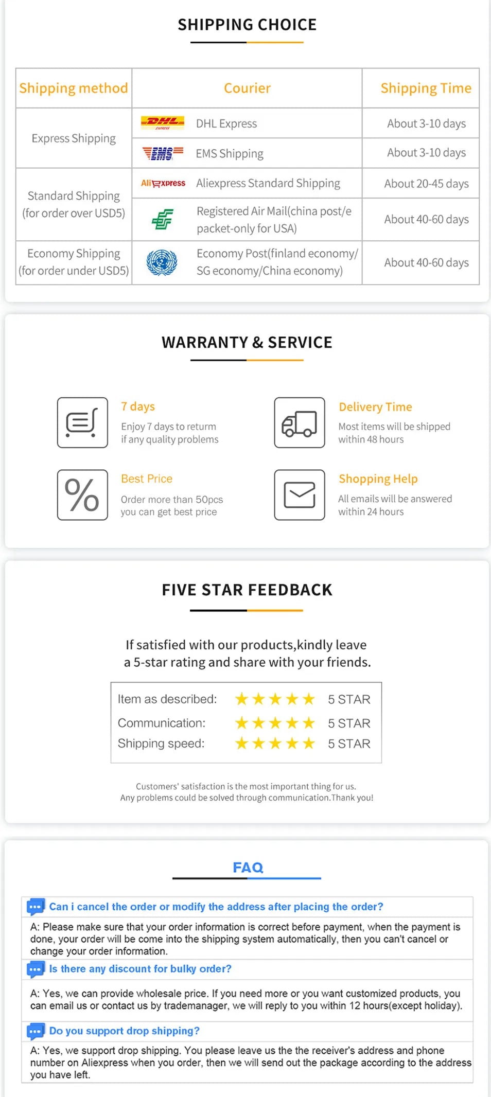 • Reliable Carriers: We ship with trusted carriers like UPS, FedEx, and USPS.