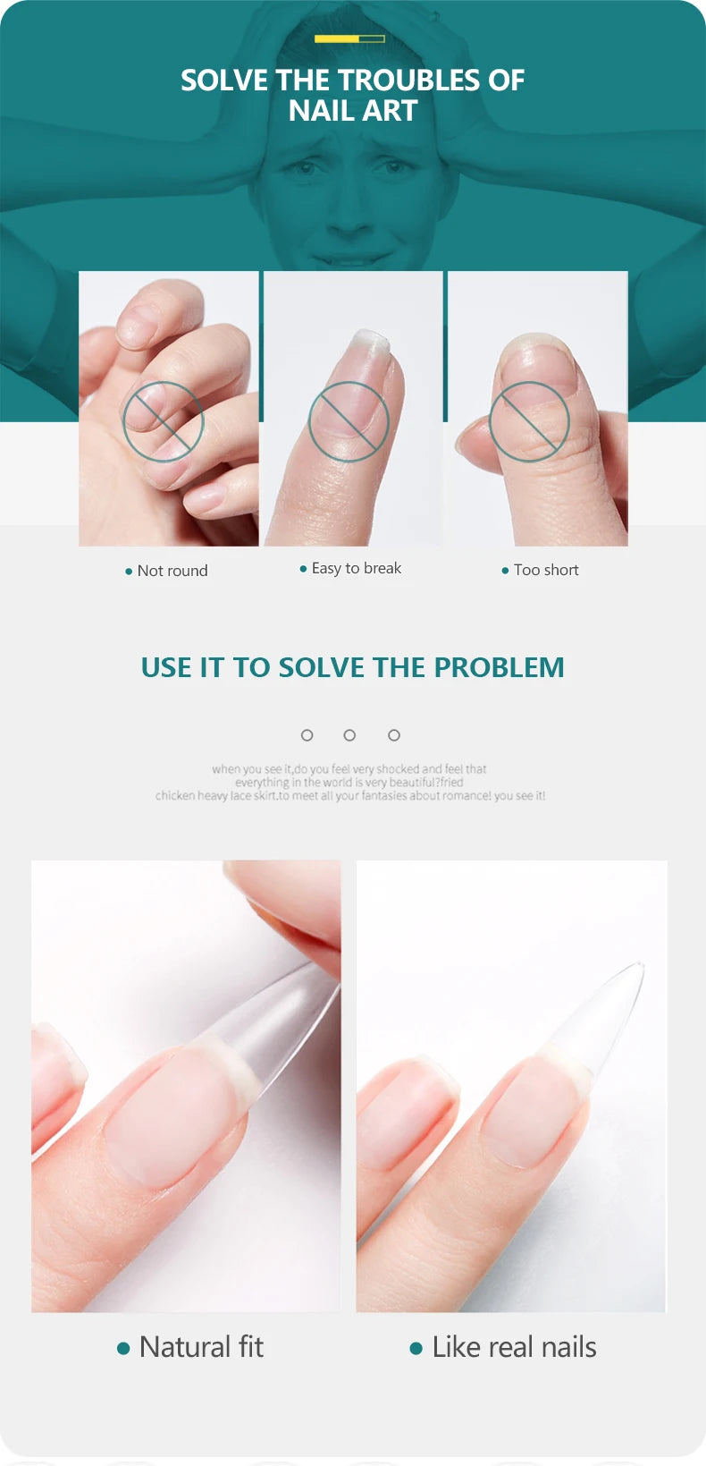 Suitable for both salon professionals and at-home nail enthusiasts seeking fast, clean nail extension solutions.