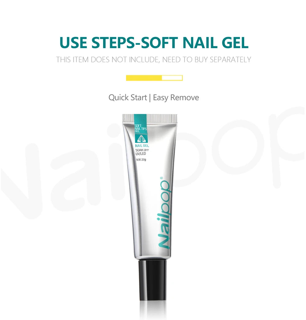 The NAILPOP 120pcs Soft Gel Nail Tips are designed for convenient nail extension and press-on applications. Perfect for beginners and professional nail technicians.