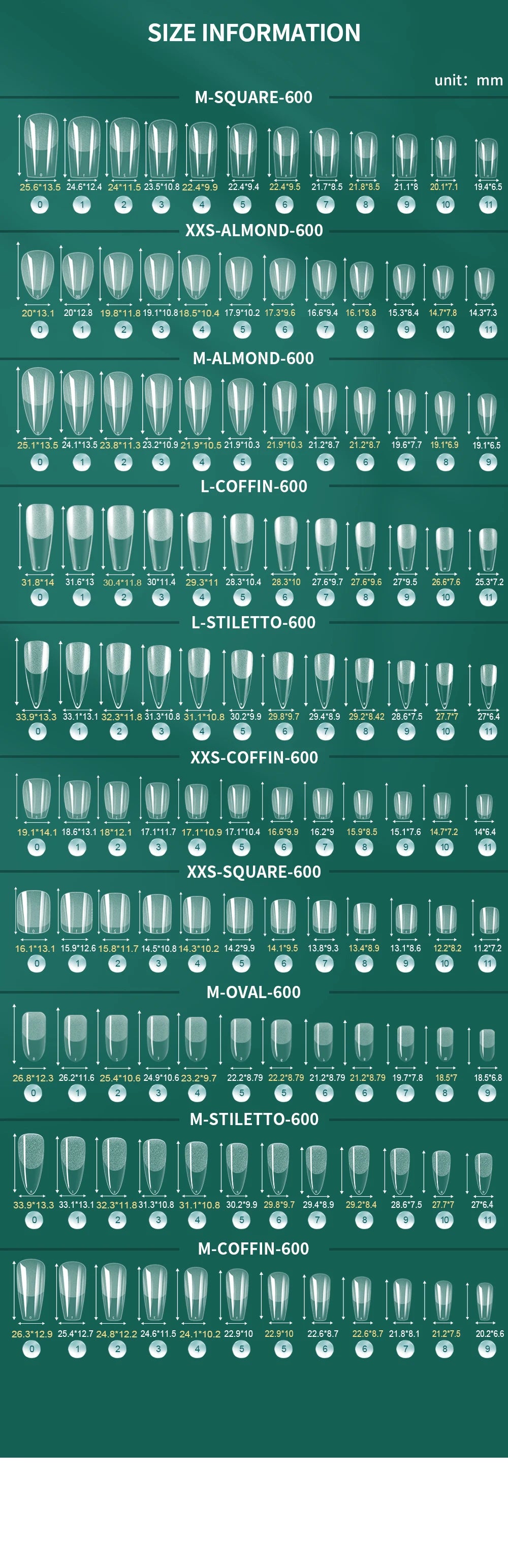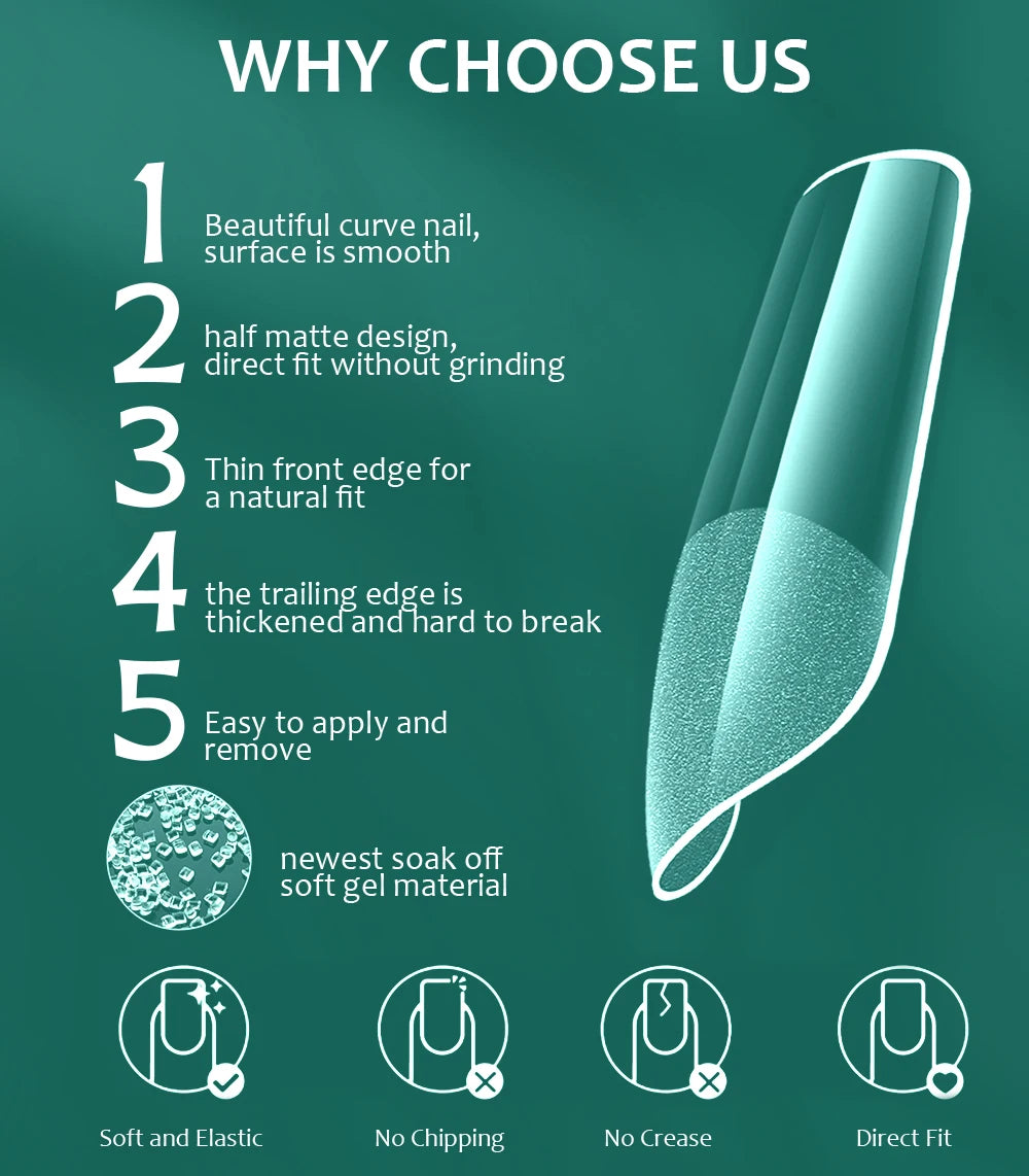The NAILPOP Soft Gel X Nail Tips include 600 pre-shaped full cover nail tips in multiple shapes. Designed for professional nail extension and DIY nail art.