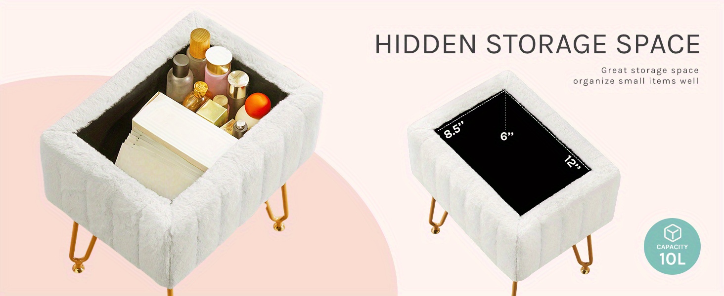OLIXIS Faux Fur Chair with Hidden Storage & Metal Legs