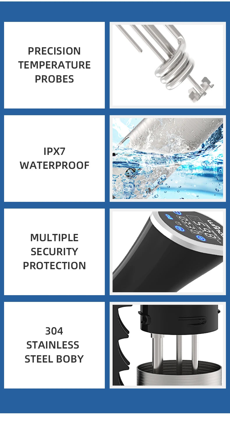 Wancle 1100W Sous Vide Immersion Cooker delivers precision-controlled cooking for consistently tender, flavorful results. Designed with advanced temperature accuracy and a clear LCD touch display, this sous vide circulator helps you cook meat, fish, vegetables, eggs, and more with confidence and minimal effort.
